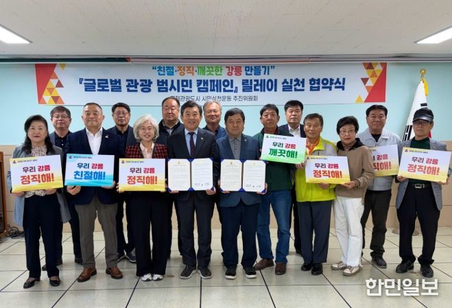 한민일보 서울포커스 임경복 기자 | 국제관광도시 시민실천운동 추진위원회와 바르게살기운동 강릉시협의회(회장 구남오)는 15일 친절‧정직‧깨끗한 강릉 만들기 글로벌 관광 범시민 캠페인 릴레이 실천 협약을 체결했다.
