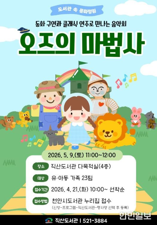 한민일보 서울포커스 황준형 기자 | 천안시 직산도서관은 내달 9일 ‘오즈의 마법사’ 공연을 운영한다고 16일 밝혔다.