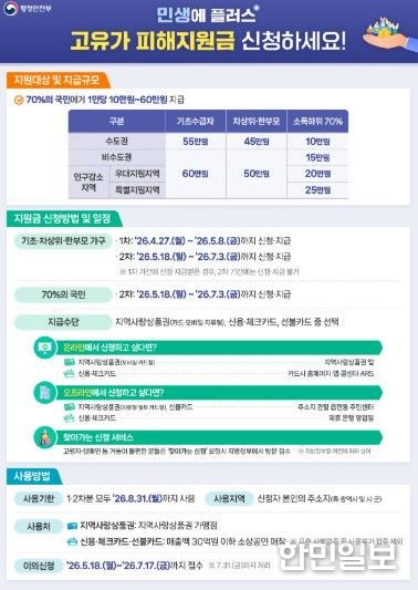 이어 2차 신청 대상자인 소득 하위 70%(약 13만 명 추산)에게도 10만 원을 지급해 유가 상승으로 인한 물가 부담을 전방위적으로 완화할 계획이다.