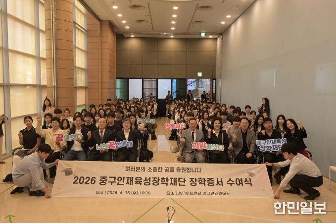 한민일보 서울포커스 김서윤 기자 | 서울 중구는 중구인재육성장학재단이 장학생 178명에게 총 1억 5,970만 원의 장학금을 전달했다고 밝혔다. 재단은 지난 15일 오후 충무아트센터 예그린스페이스에서 ‘2026년 장학증서 수여식’을 개최했다.