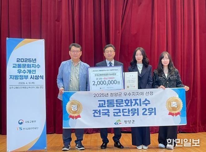 한민일보 서울포커스 임경복 기자 | 청양군이 한국교통안전공단 주관 ‘2025년 교통문화지수 실태조사’에서 전국 80개 군 지역 중 2위(A등급)를 차지하며 명실상부한 교통안전 선도 도시로 우뚝 섰다.