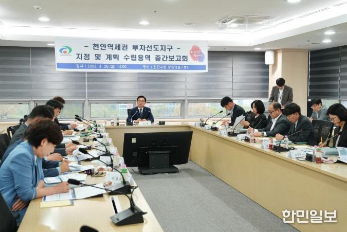 천안시는 20일 시청 중회의실에서 ‘천안역세권 투자선도지구 지정 및 계획수립용역 중간보고회’를 열고, 그동안의 추진 현황 점검과 함께 원도심 활성화를 위한 실행 전략을 논의했다.