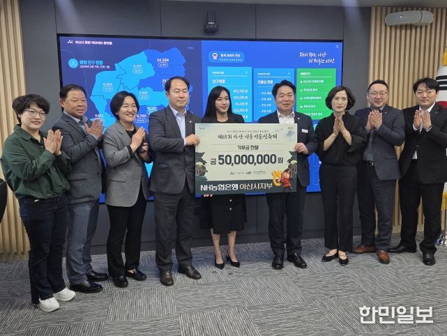 한민일보 서울포커스 임경복 기자 | NH농협은행 아산시지부가 지역 문화예술 진흥과 시민 문화향유 확대를 위해 (재)아산문화재단에 5천만 원의 기부금을 전달했다.