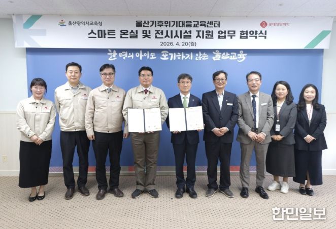 한민일보 서울포커스 임경복 기자 | 울산광역시교육청은 20일 오후 3시 접견실에서 롯데정밀화학(대표 정승원)과 ‘기후위기대응교육센터 시설 지원을 위한 업무협약’을 맺었다.