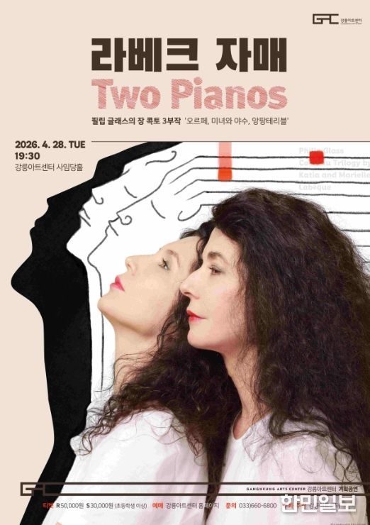 한민일보 서울포커스 임경복 기자 | 세계적 피아노 듀오 라베크 자매(Katia · Marielle Labèque)가 한국을 찾아 LG아트센터 서울과 강릉아트센터에서 단 2회 공연을 선보이는 가운데, 강릉아트센터는 오는 28일 오후 7시 30분 사임당홀에서 '필립 글래스, 장 콕토 3부작'을 개최한다.