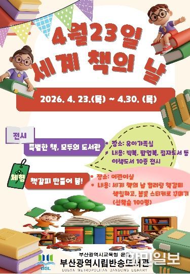 한민일보 서울포커스 임광현 기자 | 부산광역시립반송도서관은 세계 책의 날(4월 23일)을 맞아 오는 23일부터 30일까지 도서관 어린이실에서 유아와 초등학생을 대상으로 독서 문화 프로그램을 운영한다.