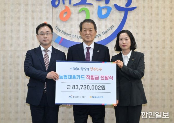 한민일보 서울포커스 기자 | NH농협은행 울산본부는 21일 남구청을 찾아 제휴카드 적립기금 8,300여 만 원을 전달했다.