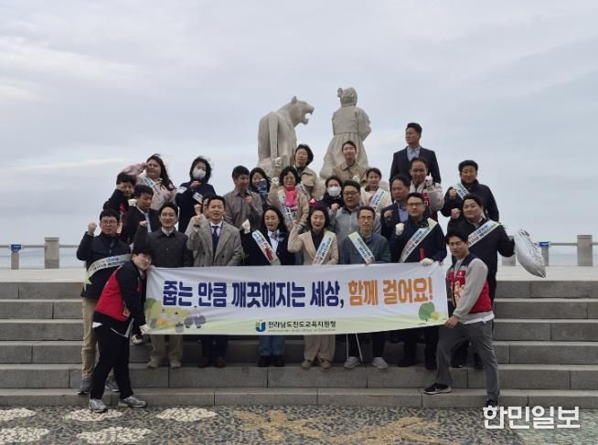 한민일보 서울포커스 임경복 기자 | 전라남도진도교육지원청은 4월 20일 진도 신비의 바닷길 축제장 일원에서 교직원의 환경 실천 역량을 높이고 지속가능한 생태환경 조성을 위한 ‘공생의 길 도보 탐사(플로깅)’ 활동을 운영했다.