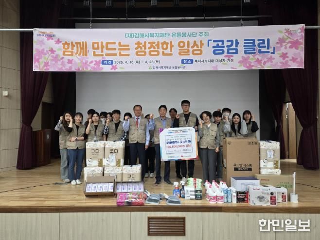 한민일보 서울포커스 김은금 기자 | (재)김해시복지재단 직원들의 자발적인 참여로 운영되는 온돌봉사단은 지난 16일 김해시 여성센터 대강당에서 신규 사회공헌활동 '함께 만드는 청정한 일상, 공감 클린'의 시작을 알리는 기념행사를 개최했다.