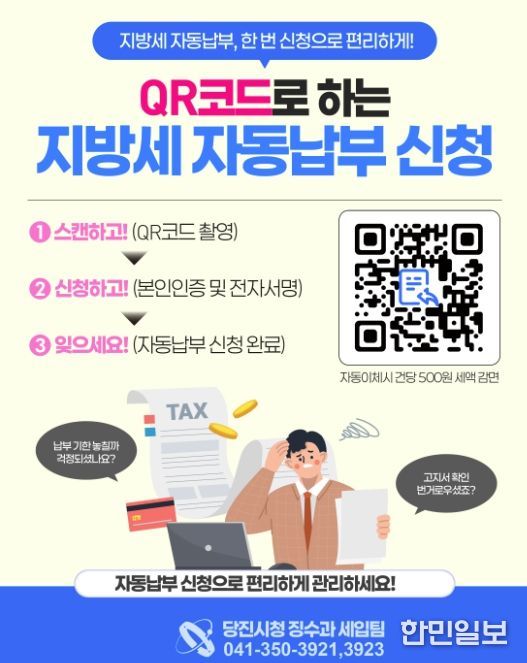 한민일보 서울포커스 임경복 기자 | 당진시가 전국 지방자치단체 최초로 스마트폰을 활용한 ‘QR 자동납부 신청 시스템’을 본격 도입하며 디지털 세무 행정의 문턱을 대폭 낮췄다.