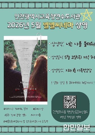 한민일보 서울포커스 유창렬 기자 | 인천광역시교육청연수도서관은 5월의 다양성영화 '별별씨네마'로 마티아스 피녜이로 감독의 ‘너는 나를 불태워’를 상영한다.