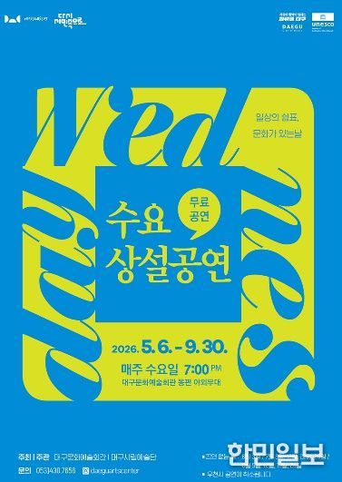 한민일보 서울포커스 김봉순 기자 | 대구문화예술회관은 오는 5월 6일부터 9월 30일까지 매주 수요일 오후 7시, 대구문화예술회관 동편 야외무대에서 문화가 있는 날 ’수요상설공연‘을 선보인다.