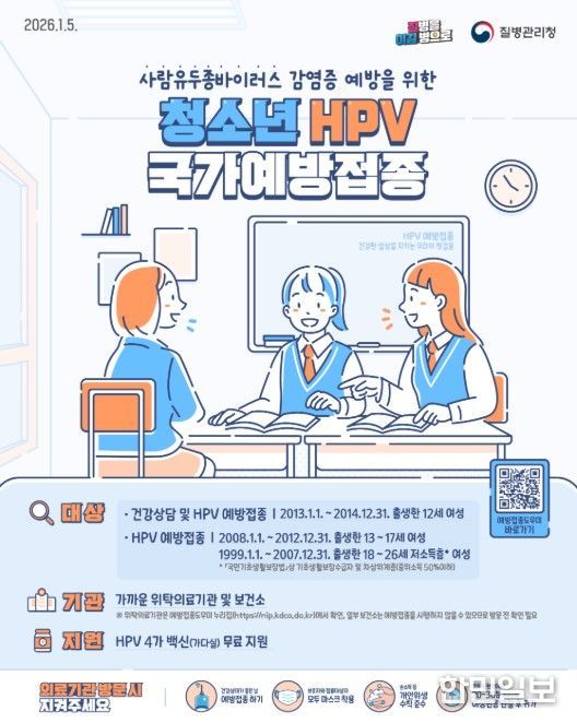 한민일보 서울포커스 임경복 기자 | 경상남도는 2026년 5월 6일부터 12세 남성 청소년(2014년생)을 대상으로 사람유두종바이러스(Human Papillomavirus, HPV) 백신 국가예방접종 지원사업을 새롭게 시행한다고 23일 밝혔다.