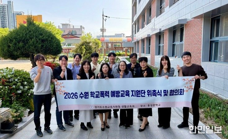 한민일보 서울포커스 진광성 기자 | 수원교육지원청은 4월 22일, 23일 양일간‘2026 학교폭력예방 지원단 및 학교폭력 사안처리 현장지원단 위촉식 및 협의회’를 개최했다. 총 23명의 지원단이 위촉장을 받고, 학교폭력 예방 및 학교폭력 사안 처리 대응 체계 구축을 위해 머리를 맞댔다.