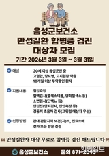 음성군보건소, 2026년 만성질환 합병증 무료검진 실시