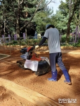 성남시, 맨발 황톳길 '폭신폭신'…10곳 흙 뒤집기 작업