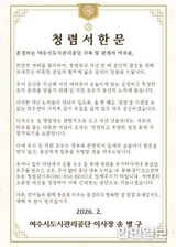 여수시도시관리공단, 설 명절 앞두고 ‘청렴서한문’ 발송