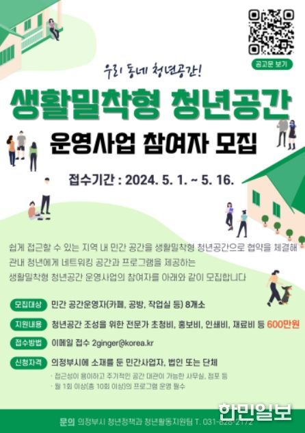 한민일보 서울포커스 김순철 기자 | 의정부시는 ‘생활밀착형 청년공간’ 운영사업에 참여할 민간사업자를 모집한다.