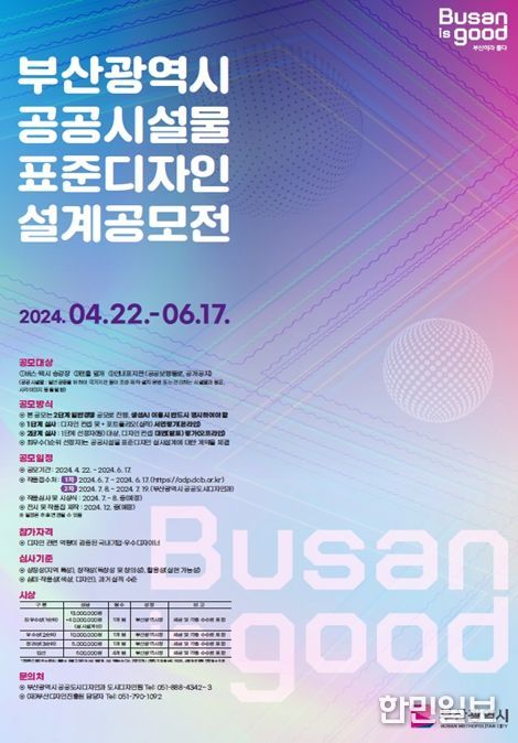 한민일보 서울포커스 김순철 기자 | 부산시는 오는 6월 17일까지 '부산시 공공시설물 표준디자인 설계 공모전'을 실시한다고 밝혔다.