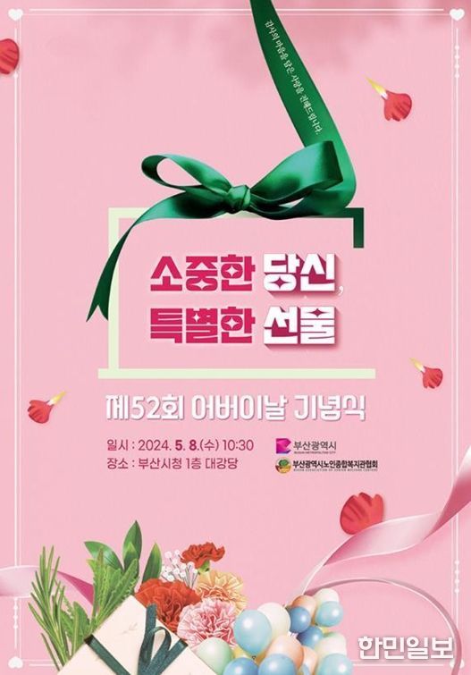 한민일보 서울포커스 김순철 기자 | 부산시는 오늘(8일) 오전 10시 30분 시청 대강당에서 '제52회 어버이날 기념식'을 개최한다고 밝혔다.