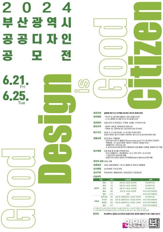 한민일보 서울포커스 김순철 기자 | 부산시는 오는 6월 21일부터 25일까지 '글로벌 허브 도시 도약을 선도하는 부산의 공공디자인'을 주제로 '2024년 부산시 공공디자인 공모전'을 개최한다고 밝혔다.