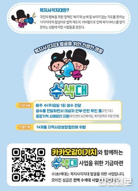 수색대 사업은 카카오 사회공헌 플랫폼 ‘같이가치’를 통해 기금을 마련해 운영할 예정이다. 기부 모금함은 7월 17일까지 카카오 같이가치에서 모금명 ‘복지사각지대! 함께 찾는 당신이 진정한 영웅입니다.’를 조회하면 확인할 수 있다.