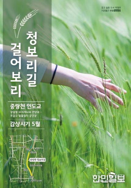 청보리길은 ‘생태하천 걷고 싶은 명품도시 조성사업’의 일환으로 지난해 처음 조성했다. 중랑천 내 향토적인 식물군락지를 통해 일상생활 속 휴식처를 제공해 호응을 얻고 있다.