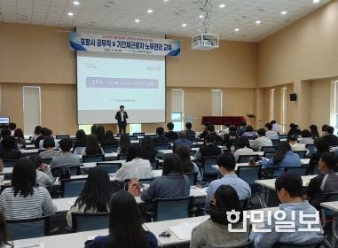 한민일보 서울포커스 김순철 기자 | 포항시는 28일 포항시청소년문화의집에서 체계적인 노무관리를 위해 공무직 및 기간제 근로자의 복무, 급여 등 노무관리 담당 공무원 120여 명을 대상으로 교육을 실시했다.