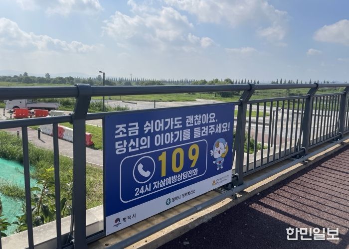 한민일보 서울포커스 황준형 기자 | 평택시는 지난달 22일, 교량 투신자살 예방을 위한 생명 존중 문화 조성 사업의 하나로 군문교에 자살 예방 상담 전화번호가 포함된 ‘생명사랑 안내판’을 총 2곳 설치했다고 밝혔다.