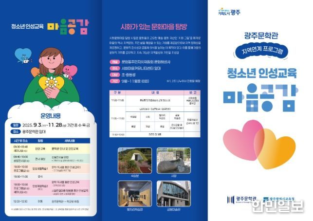 한민일보 서울포커스 박용남 기자 | 광주광역시는 지역 청소년들의 문학적 감수성과 창의적 사고를 키우기 위해 광주문학관에서 ‘2025 지역 연계 문학프로그램’을 9월부터 11월까지 3개월간 운영한다.