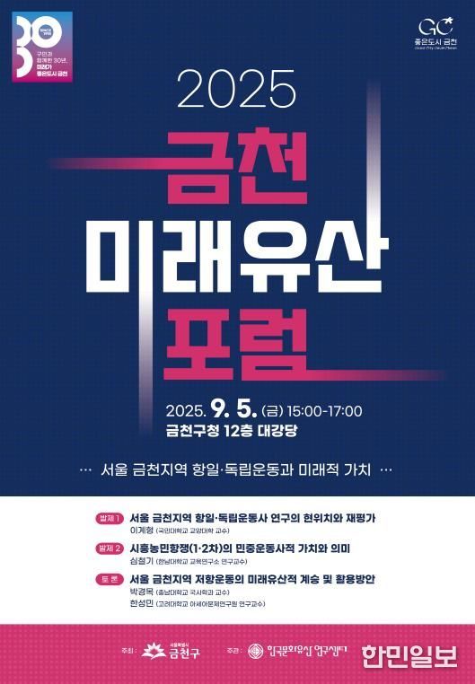이번 포럼은 '서울 금천지역 항일·독립운동과 미래적 가치'를 주제로, 그동안 주목받지 못했던 지역의 저항과 연대의 역사를 미래유산의 관점에서 새롭게 조명하기 위해 마련됐다. 특히, 1898년과 1904년 두 차례에 걸쳐 일어난 '시흥농민항쟁'의 역사적·학술적 가치를 재정립하는 데 중점을 둔다.