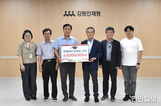 한민일보 서울포커스 곽중희 기자 | 강원인재원은 9월 8일 (재)대구 강원도민 모임‘선산회’가 고향 후배들의 꿈을 응원하기 위해 장학금 900만 원을 기탁했다고 밝혔다.