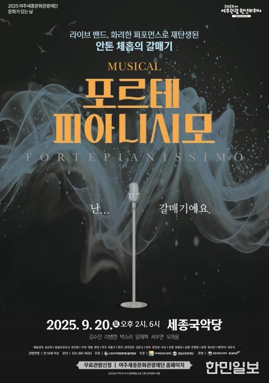한민일보 서울포커스 전희주 기자 | 여주세종문화관광재단이 오는 9월 20일 세종국악당에서 뮤지컬 ‘포르테 피아니시모’를 선보인다. 공연은 오후 2시와 6시, 총 2회에 걸쳐 무료로 진행된다.