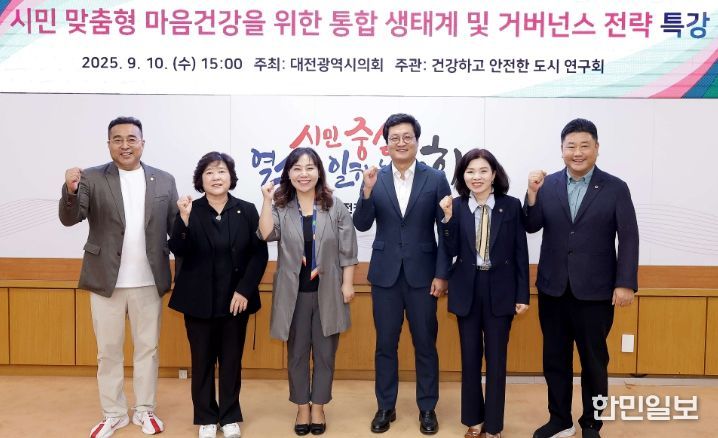 한민일보 서울포커스 유한희 기자 | 대전시의회 ‘건강하고 안전한 도시연구회’는 10일 시의회 소통실에서 ‘시민 맞춤형 마음건강을 위한 통합 생태계 및 거버넌스 전략’을 주제로 전문가 특강을 진행했다.