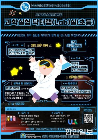 한민일보 서울포커스 전희주 기자 | 의왕시청소년재단 산하 부곡동청소년문화의집에서는 청소년 활동 인증제13108호 '과학실헙 ‘닥터랩(Lab)실’(초등)' 참가자를 모집한다.