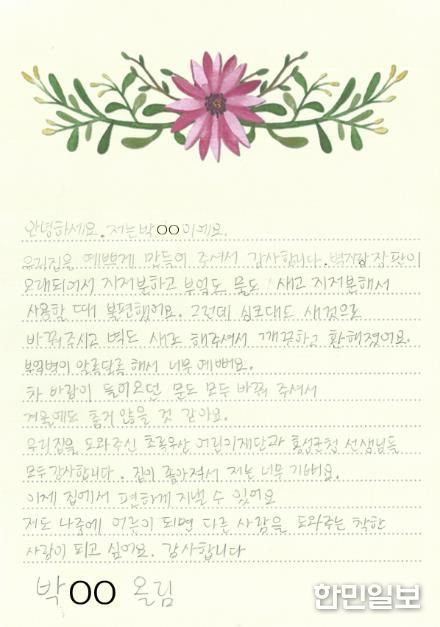 특히, 감사의 마음을 담아 전한 손편지에는 “싱크대도 새것으로 바꿔주시고 벽도 새로 해주셔서 깨끗하고 환해졌어요. 찬바람이 들어오던 문도 모두 바꿔 주셔서 겨울에도 춥지 않을 것 같아요. 우리집을 도와주신 초록우산어린이재단과 홍성군청 선생님들 모두 감사합니다”라는 진심 어린 소감이 담겨 있어 큰 감동을 주고 있다.
