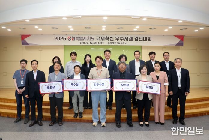 한민일보 서울포커스 곽중희 기자 | 강원특별자치도는 9월 12일 오후 2시 도청 별관 회의실에서 내외부 심사단 및 도·시군 관계공무원 등 약 40여 명이 참석한 가운데 2025년 강원특별자치도 규제혁신 우수사례 경진대회를 개최했다.