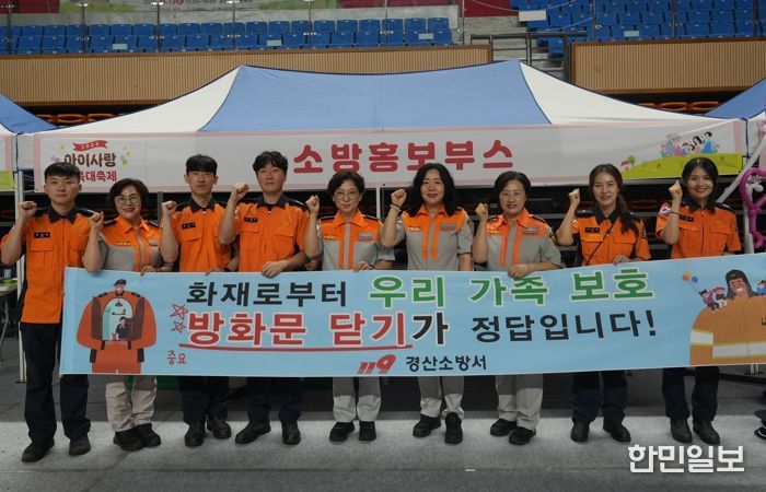 한민일보 서울포커스 최성훈 기자 | 경산소방서는 9월13일 경산실내체육관에서 개최된 ‘아이사랑 가족대축제’ 행사장에서 의용소방대와 합동으로 방화문닫기 캠페인을 실시했다고 밝혔다.