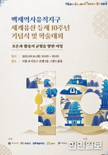 한민일보 서울포커스 유돈상 기자 | 부여군과 (재)백제세계유산센터는 오는 9월 16일 서울 포시즌스 호텔에서 ‘백제역사유적지구 세계유산 등재 10주년 기념식 및 학술대회’를 개최한다고 밝혔다.