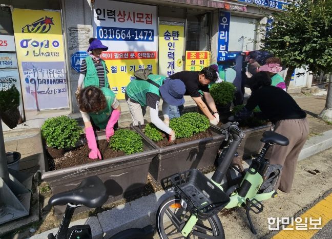 한민일보 서울포커스 황준형 기자 | 평택시 신장2동 새마을부녀회와 신장2동 행정복지센터 직원 등 30여 명이 지난 15일 가을꽃을 심어 마을을 산뜻하게 단장했다.