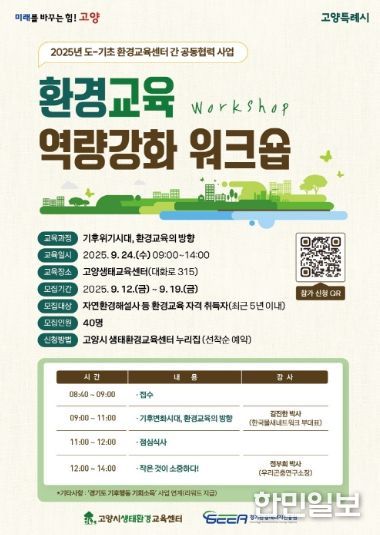 한민일보 서울포커스 김은금 기자 | 고양특례시는 오는 24일, 도-기초 환경교육센터 간 협력 사업의 일환으로‘환경교육 역량강화 워크숍’을 개최한다고 16일 밝혔다.