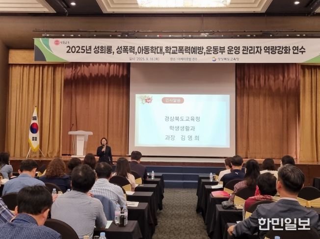 한민일보 서울포커스 임철현 기자 | 경북교육청은 16일부터 19일까지 동부·서부·중부 권역별로 '2025학년도 관리자(교감) 성희롱·성폭력·아동학대·학교폭력 예방 및 운동부 운영 역량강화 연수'를 개최한다고 밝혔다.