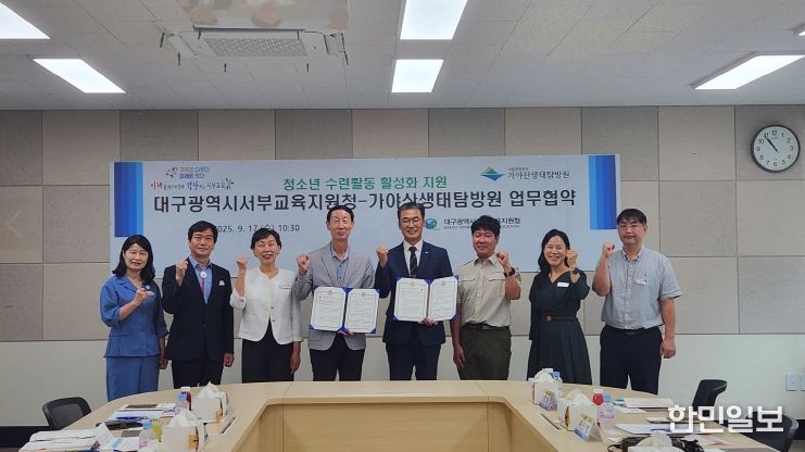 한민일보 서울포커스 임철현 기자 | 대구서부교육지원청은 9월 17일 가야산생태탐방원과 청소년 수련활동 활성화를 위한 업무협약을 체결했다.