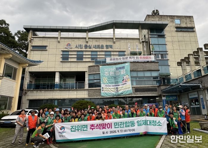 한민일보 서울포커스 황준형 기자 | 평택시 진위면 행정복지센터는 17일 진위면 12개 단체협의회 단체장과 회원, 공무원 등 80여 명과 함께 추석맞이 민관 합동 일제 대청소를 진행했다.
