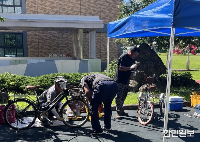 수리 대상 자전거는 모두 15대로 브레이크 점검, 체인 정비, 바퀴 교체, 타이어 공기 주입 등 안전한 주행을 위한 다양한 정비가 이루어졌다.