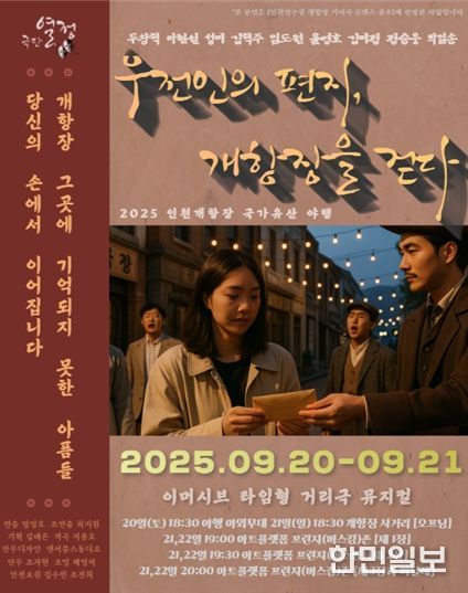 한민일보 서울포커스 유창렬 기자 | 뮤지컬 '우전인의 편지, 개항장을 걷다'가 오는 2025년 9월 20일~21일 ≪2025 인천 개항장 국가유산 야행≫ 기간 중 개항장 일대에서 다시 선보인다.