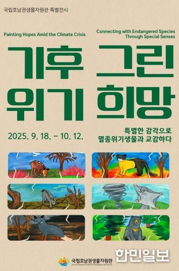 한민일보 서울포커스 진광성 기자 | 환경부 산하 국립호남권생물자원관(관장 박진영)은 전남 지역 특수교육 대상 학생들과 함께하는 ‘기후위기, 그린희망’ 기획전을 9월 18일 개막한다고 밝혔다.