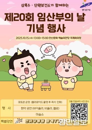 한민일보 서울포커스 임철현 기자 | 안산시 상록수·단원보건소는 10월 15일 안산문화예술의전당 국제회의장에서 ‘제20회 임산부의 날’을 맞아 임신·출산을 준비하는 가족과 지역 주민이 함께하는 태교·문화 행사 ‘Mom & Baby Day’를 개최한다고 19일 밝혔다.