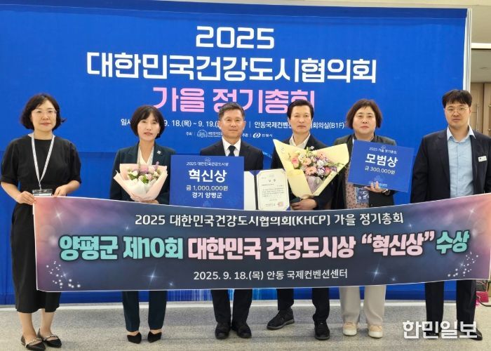 한민일보 서울포커스 차재만 기자 | 양평군은 18일부터 19일까지 경북 안동시 안동국제컨벤션센터에서 열린 제21회 대한민국건강도시협의회 정기총회에서 ‘2025 대한민국 건강도시상 혁신상’을 수상했다고 밝혔다.