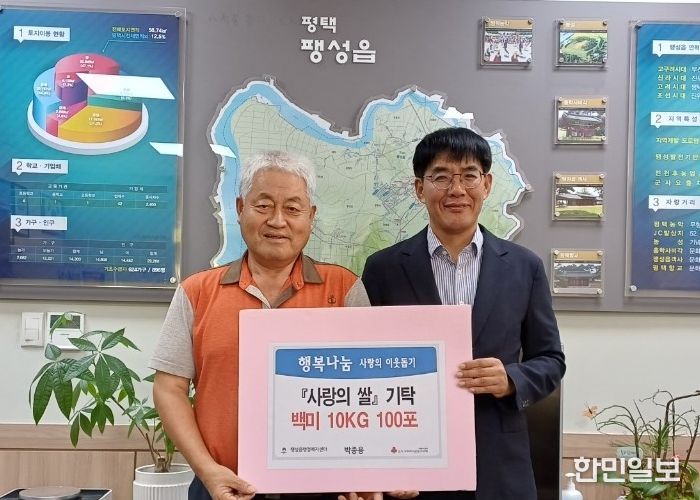 이에 이근영 팽성읍장은 “오랜 시간 동안 꾸준한 기부에 진심으로 감사드린다”며 “매년 명절마다 덕분에 많은 가정이 더욱 풍성하고 따뜻한 명절을 보낼 수 있었다. 지역 사회의 모범이 되어주신 박종용 님에게 깊은 존경과 감사를 드린다”고 전했다.